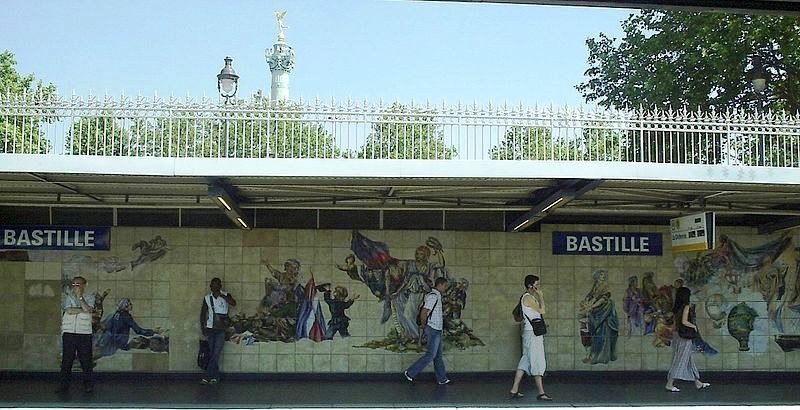 Ο σταθμός της Βαστίλης αποτίνει φόρο τιμής στη γαλλική ιστορία. Στην πλατφόρμα της γραμμής 5 μπορείτε να δείτε ότι έχει απομείνει από τις φυλακές της Βαστίλης. Ενώ στην πλατφόρμα της γραμμής 1 έργα τέχνης, εμπνευσμένα από τα γεγονότα, ζωγραφισμένα στους τοίχους.