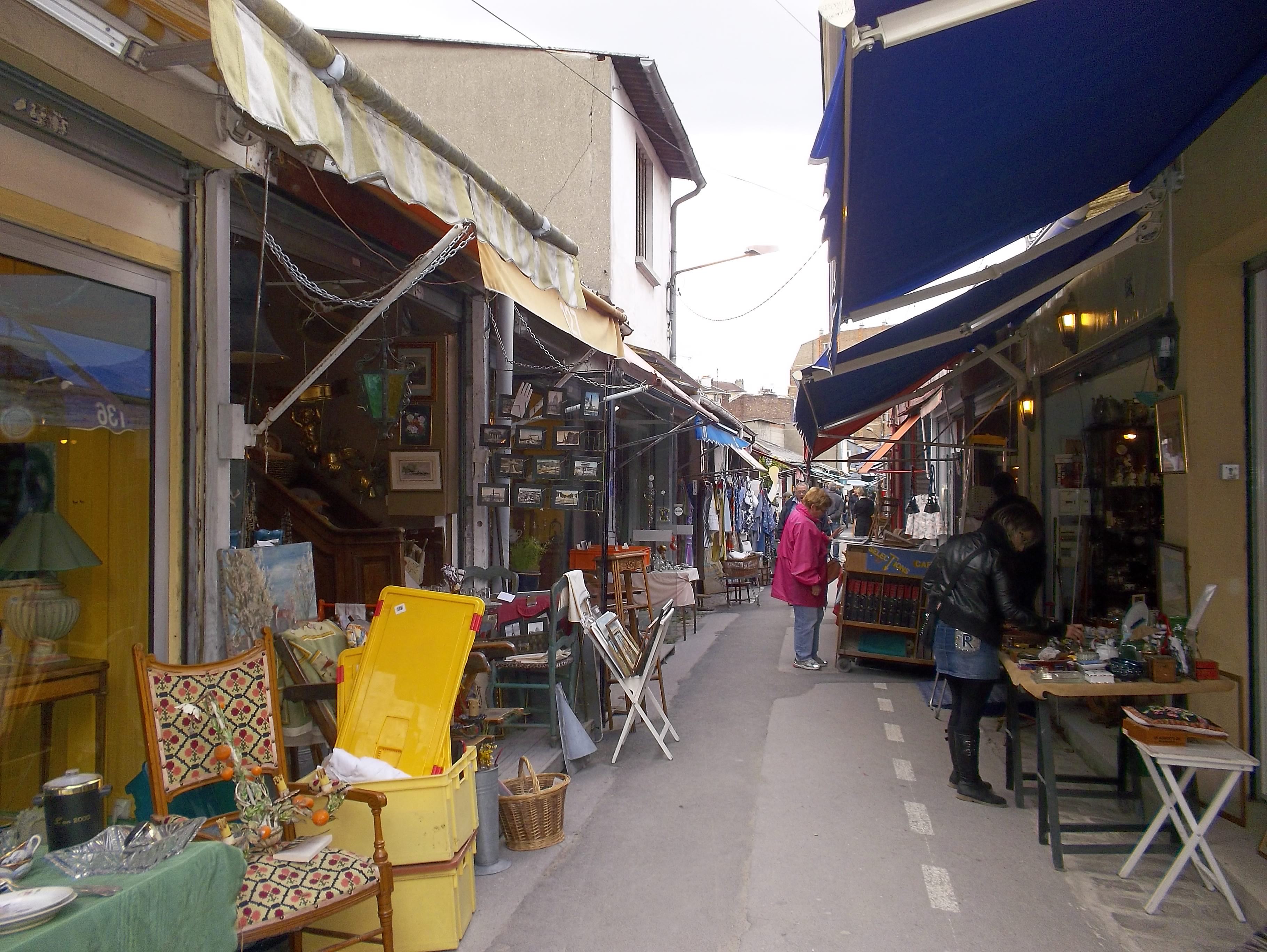 Αυτή είναι η υπαίθρια αγορά Marché aux Puces, που χάρη στη μοναδική της ατμόσφαιρα αποτελεί θεσμό για τους λάτρεις άλλων εποχών! Ο όρος «Puces», ανεξάρτητα από την προέλευσή του, αποτελεί σήμερα συνώνυμο της αναζήτησης «θησαυρών». Στα ελληνικά, σημαίνει κοινώς παζάρι, αλλά το Marché aux Puces είναι εντελώς διαφορετικό από οποιοδήποτε παζάρι έχετε δει!