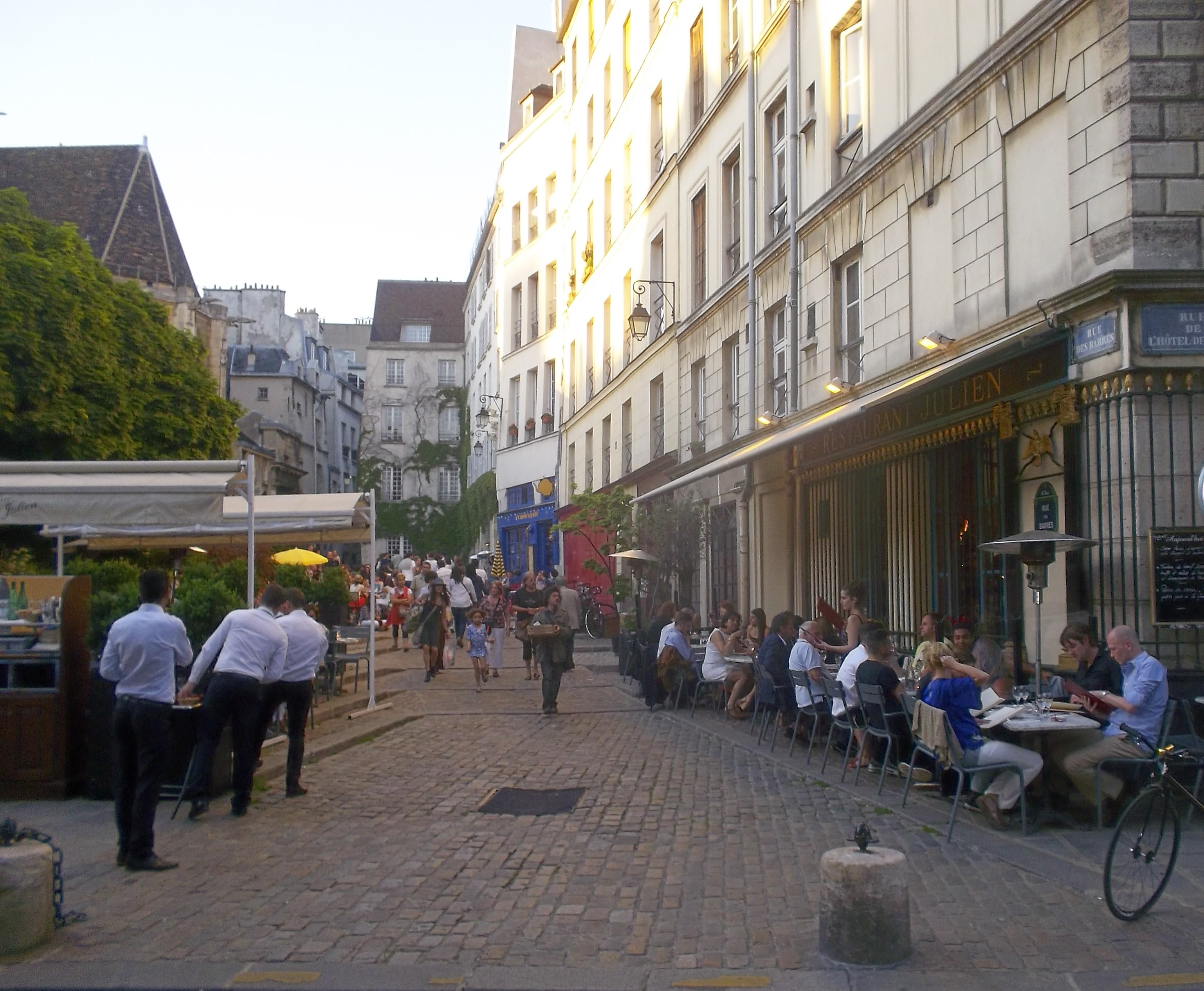 Πόσο μ’αρέσει να κάνω βόλτα σε γειτονιές του Παρισιού και εντελώς τυχαία ν’ ανακαλύπτω μικρά bistro-θησαυρούς δεν περιγράφεται! Ο περίπατος αυτή τη φορά με οδήγησε στην πίσω μεριά της Παναγίας των Παρισίων. Διέσχισα τη γέφυρα πάνω από το ποτάμι και ένα λιθόστρωτο δρομάκι με τραπεζάκια μου τράβηξε το ενδιαφέρον! Δύο βήματα από τον Σηκουάνα, ανάμεσα στο Marais και στο île Saint-Louis, στα πόδια της γοτθικής εκκλησίας Saint-Gervais με τους εντυπωσιακούς πυργίσκους, το εστιατόριο chez Julien σας καλοσωρίζει σ’ενα ειδυλλιακό κάδρο που μοιάζει σαν να βγήκε από χώρα παραμυθιού!