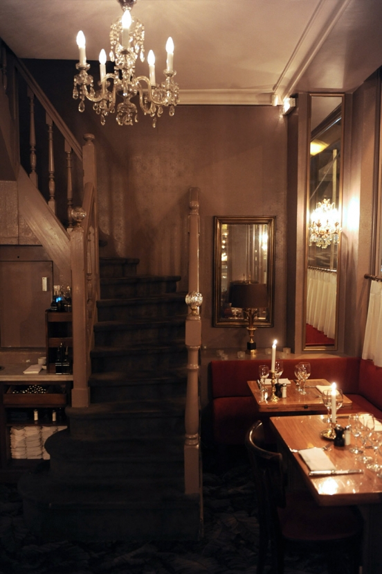 Η κουζίνα είναι αυθεντική και τυπική γαλλική. Στο μενού θα βρείτε ανάμεσα σε άλλα «côte de veau aux morilles et son gratin dauphinois» (κοινώς μοσχαρίσια μπριζόλα με πατάτες), «boudin noir aux deux pommes» (λουκάνικο με μήλα) και «poulet de Bresse rôti et pommes de Noirmoutier» (κοτόπουλο με πατάτες) το οποίο και διάλεξα (για να πάμε διά της ασφαλούς οδού) και ήταν νοστιμότατο! Το αρνητικό είναι πως μέχρι στιγμής το μενού υπάρχει μόνο στα γαλλικά αλλά μην ανησυχείτε, γιατί κάποιος από το όμορφο προσωπικό (πραγματικά όλοι μοιάζουν σαν να έχουν ξεπηδήσει από τα fashion catwalks του Μιλάνου!) θα καταφτάσει να σας κάνει τη μετάφραση!