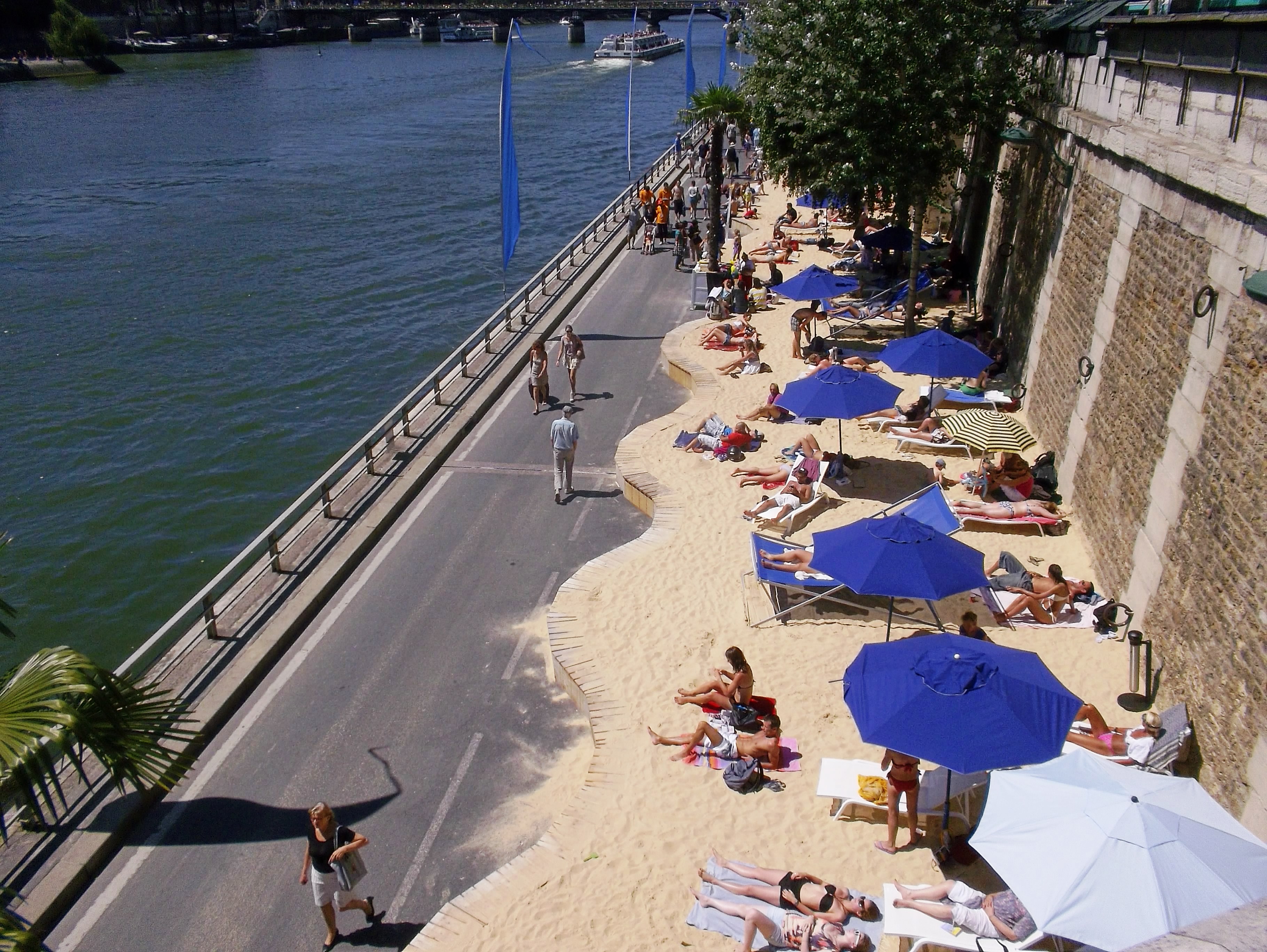 Κι αφού δεν υπάρχει θάλασσα, δεν υπάρχουν και παραλίες. Αλλά αυτό αποτέλεσε πρόκληση για τον δαιμόνιο δήμαρχο του Παρισιού Bertrand Delanoë, ο οποίος πιθανότατα κατά το ρητό «αν δεν πάει ο Μωάμεθ στο βουνό πάει το βουνό στον Μωάμεθ», έφερε την πλαζ στο Παρίσι, για τους κατοίκους που παραμένουν το καλοκαίρι στην πόλη του φωτός, εγκαινιάζοντας το 2002 το Paris Plage! Μια τεχνητή παραλία με άμμο, φοινικόδεντρα, ξαπλώστρες και ομπρέλες στη δεξιά όχθη του Σηκουάνα. Από το 2006 προστέθηκε μια ακόμη παραλία στην αριστερή όχθη αλλάζοντας το όνομα του concept σε Paris Plages (βέβαια φέτος λόγω έργων στην άλλη μεριά περιορίστηκε και πάλι μόνο στη δεξιά όχθη).