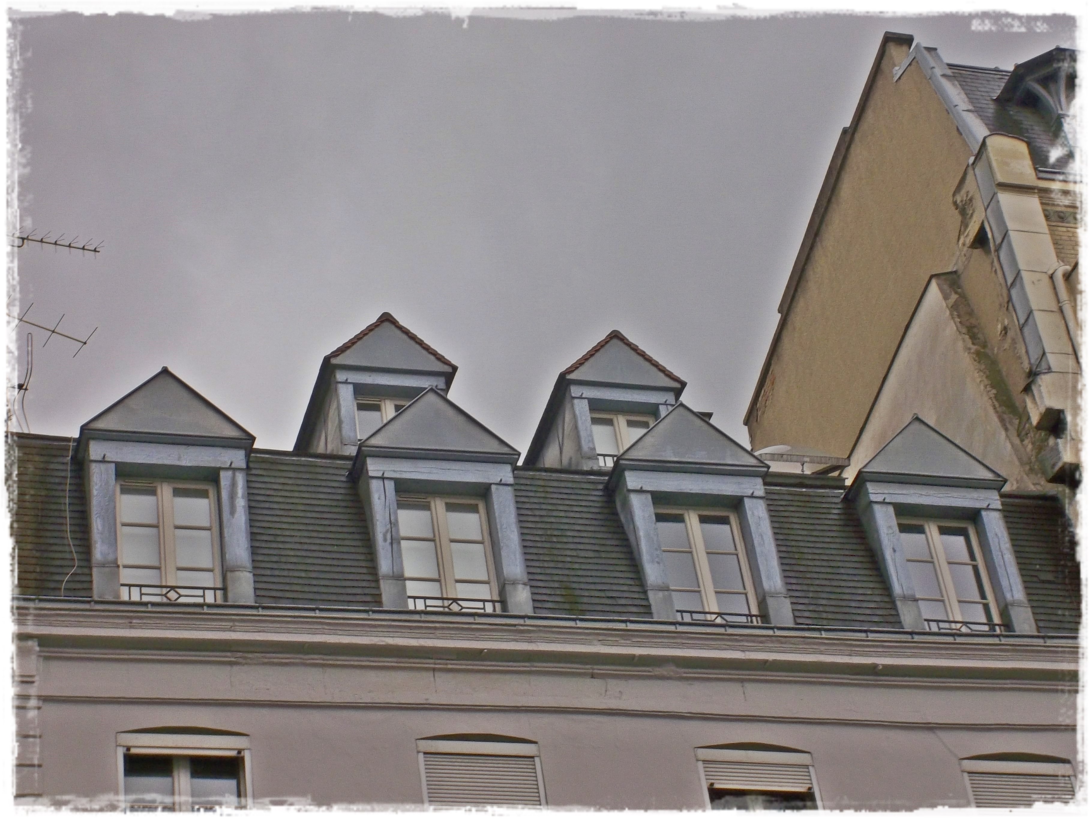 Αυτό που μου αρέσει ακόμη πιο πολύ είναι οι οροφές των παριζιάνικων κτηρίων με τις μικρές στρογγυλές κεραμικές καπνοδόχους τη μια δίπλα στην άλλη. Αλλά και τα μικρά παράθυρα στο πάνω μέρος των κτηρίων, τα chambres de bonne. Ένας τύπος γαλλικού διαμερίσματος που χρησίμευε ως δωμάτιο του υπηρετικού προσωπικού, με εσωτερική σκάλα που κατέληγε στην κουζίνα του σπιτιού για να έχει άμεση πρόσβαση η οικιακή βοηθός. Τα δωμάτια αυτά ήταν περίπου από 6 ως 12 m2, η τουαλέτα ήταν κοινή με άλλα chambres de bonne και βρισκόταν έξω από το δωμάτιο, στο διάδρομο, είχαν ωραία θέα αλλά ήταν εκτεθειμένα πολύ στον αέρα. Η λέξη προέρχεται από τη φράση «bonne à tout faire», κοινώς καλή για όλες τις δουλειές και αναφερόταν στην οικιακή βοηθό.