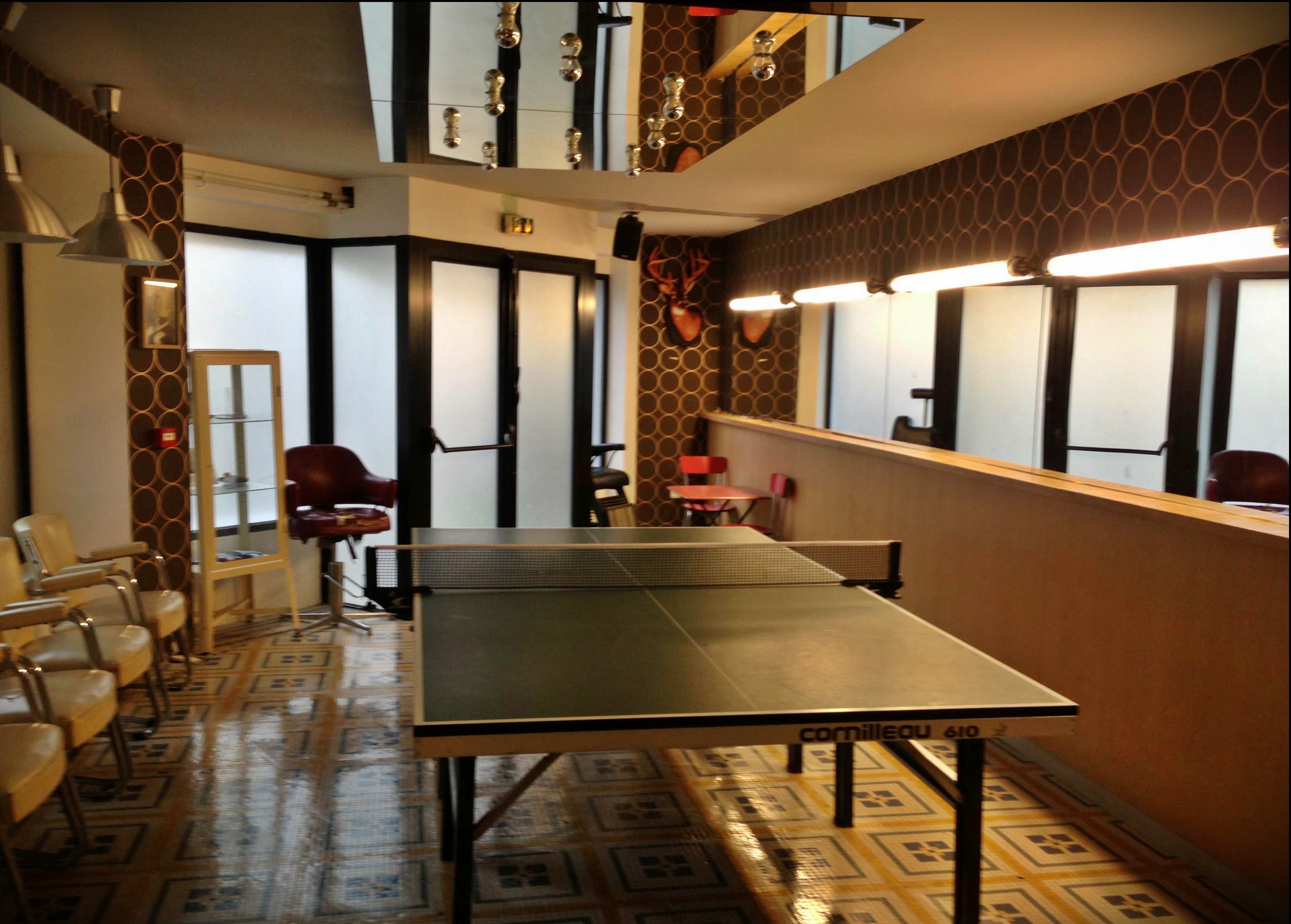 Extra Tip: Τα τραπέζια του ping pong έχουν τοποθετηθεί σε δύο ορόφους και έχουν βαφτιστεί από τις προσωπικότητες που έπαιζαν ping pong. Δηλαδή μπορεί να παίξετε στο τραπέζι του Marcel Cerdan, του Henry Miller (που αγαπούσε να παίζει με γυμνά κορίτσια… Κοιτάξτε την εικόνα στο background), του Frank Zappa, του Fidel Castro, του Bob Marley ή της Merilyn Monroe.