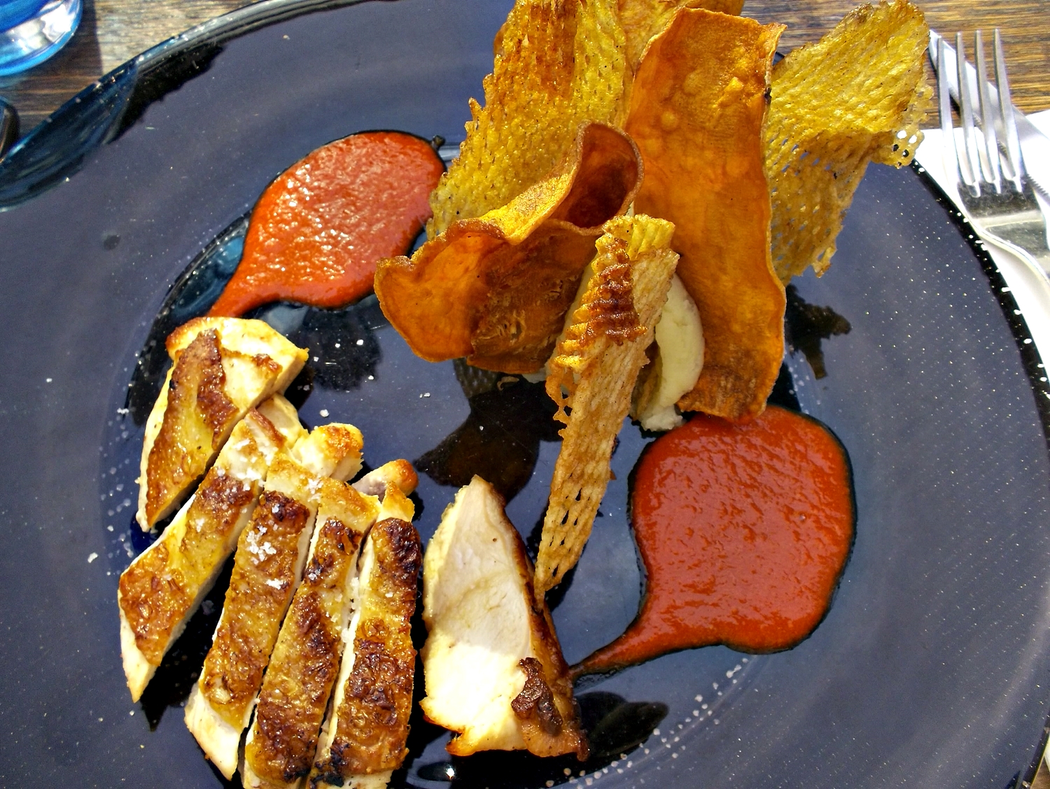 Αλλά αρκετά με το decoration. Πάμε στο ζητούμενο, στο ΦΑΓΗΤΟ. Εδώ εγώ για άλλη μια φορά πήρα poulet (κοτόπουλο). Πότε θα αρχίσω να κακαρίζω διερωτόμαι πολύ σοβαρά. Μόλις το είδα βέβαια άρχισα από μέσα μου τα γαλλικά (putain με τις γκουρμεδιές τους και τα λοιπά!Ξέρετε!) γιατί μου φάνηκε κομματάκι μικρή η μερίδα αλλά εντάξει χόρτασα. Τσάμπα τους έβριζα τους ανθρώπους. Η φίλη μου πήρε μοσχαράκι που βέβαια λεγόταν «η τίγρης που κλαίει» (κλεψιμέικο από τους Ταιλανδέζους εικάζω!).