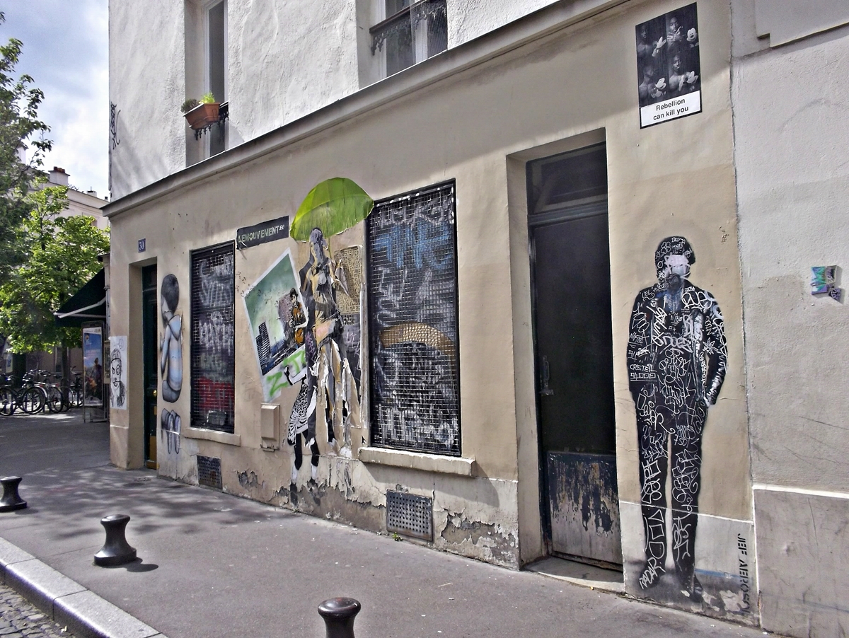 Χώρο στη φωτογραφική μηχανή να έχετε και δεν θα μείνει αχρησιμοποίητη με τα graffiti των Jef Aérosol, με το χαρακτηριστικό κόκκινο τοξάκι δίπλα από τα έργα του, Jérôme Mesnager με τις λευκές αντρικές φιγούρες με μυς (που μου θυμίζουν μάθημα ανθρωπολογίας), Seth, του αιώνιου ταξιδιάρη και τόσων άλλων που κοσμούν αυτή τη γειτονιά και της έχουν δώσει τον πιο έντονο χαρακτήρα!
