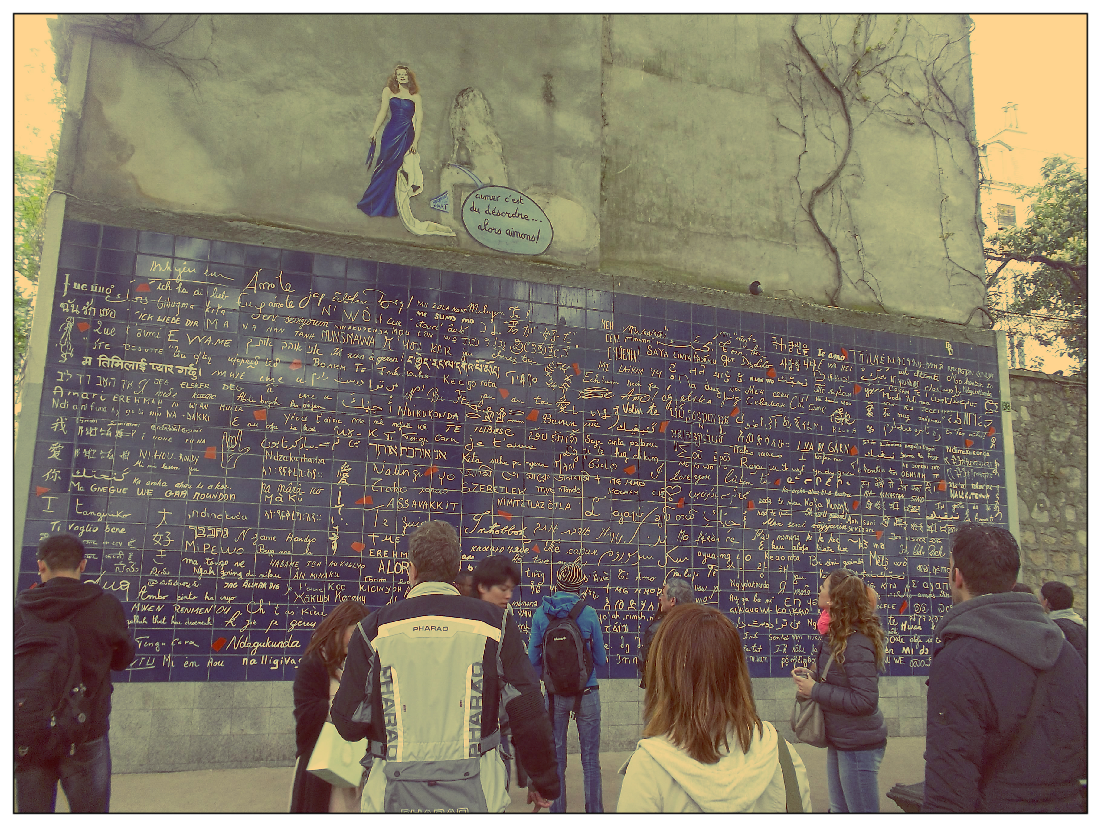 Αν κάνετε βόλτα στη Μονμάρτη, θυμηθείτε να περάσετε από την πλατεία Abbesses για να δείτε τον τοίχο με τα «σ’αγαπώ» και να φωτογραφηθείτε δίπλα στο ελληνικό «σ’αγαπώ» και το αρχαίο «Σου ερω». Εγώ βέβαια, έβγαλα δίπλα στο «Ti amo» η Italiana!