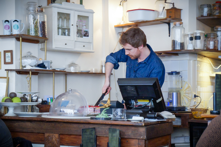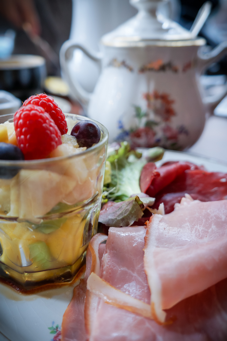 Μπαίνοντας στο μαγαζί, ένιωσα σαν να μπαίνω στο σπίτι του Papy και της Mamie, όπως λένε και οι Γάλλοι, δηλαδή του παππού και της γιαγιάς. Μια vintage αίσθηση σπιτικής θαλπωρής υπάρχει στο La Chambre aux Oiseaux με ρομαντικές ταπετσαρίες, βιβλία, κλασικές πολυθρόνες, παλιά πορτατίφ, ξύλινα κάδρα και λουλουδάτα πορσελάνινα σερβίτσια. Αλλά το πιο σπουδαίο, είναι πως όλες οι λιχουδιές είναι σπιτικές από το carrot-cake μέχρι τις μαρμελάδες. Φυσικά και ξεκλήρησα κάνα δυό baguettes, αφού έτρωγα τις φέτες εναλλάξ, μία με σαλαμάκι, μία με βούτυρο και μαρμελάδα. Ααα το καταυχαριστήθηκα (όλα κι όλα!) και στο τέλος, έφαγα και τη fruit salad μου.