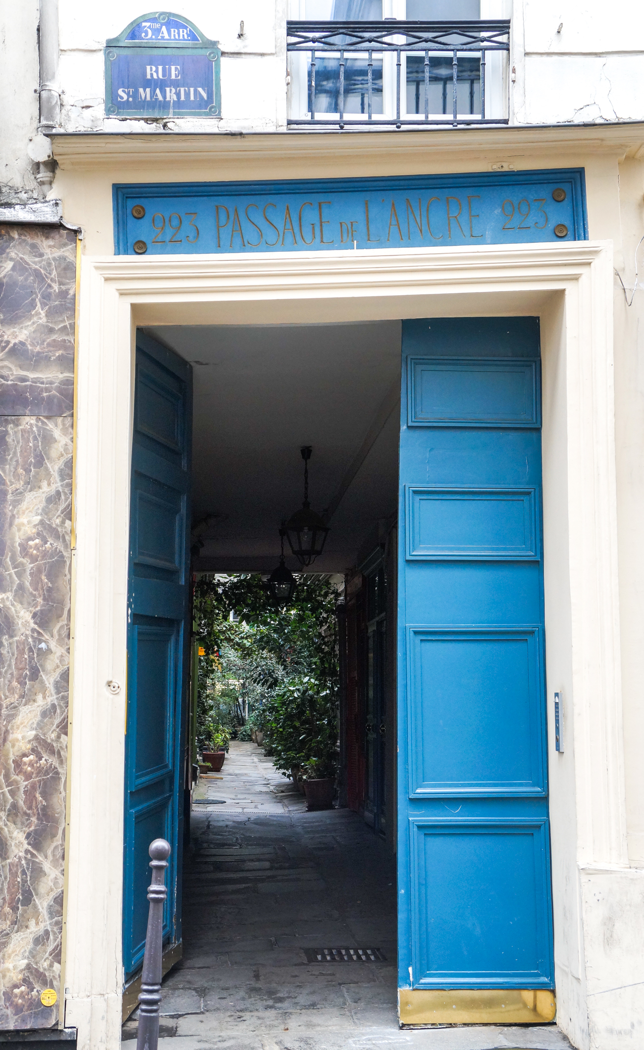Το χόμπι μου των τελευταίων μηνών στο Παρίσι είναι να ψάχνω ό,τι πιο κρυφό υπάρχει. Εκτός από τα «κρυφά» bar, τα λεγόμενα speakeasy που επισκέπτομαι μετά μανίας (όχι δεν είμαι αλκοολική!), σειρά έχουν οι κρυφές αυλές και τα κρυφά δρομάκια. Δεν ήταν πολύ δύσκολο να εντοπίσω το Passage de l’ Ancre, μιας και όλη την ώρα σουλατσάρω στο 3ο διαμέρισμα. Τα εύσημα και στο έμπειρο (ή περίεργο;) μάτι μου που κοιτάει πάντα πίσω από τις μεγάλες παριζιάνικες πόρτες, γιατί αλλιώς κάλλιστα θα μπορούσε κάποιος να προσπεράσει την μπλε πόρτα, επί της οδού rue St-Martin, χωρίς να μπει μέσα ώστε ν’ ανακαλύψει το κρυφό αυτό δρομάκι.