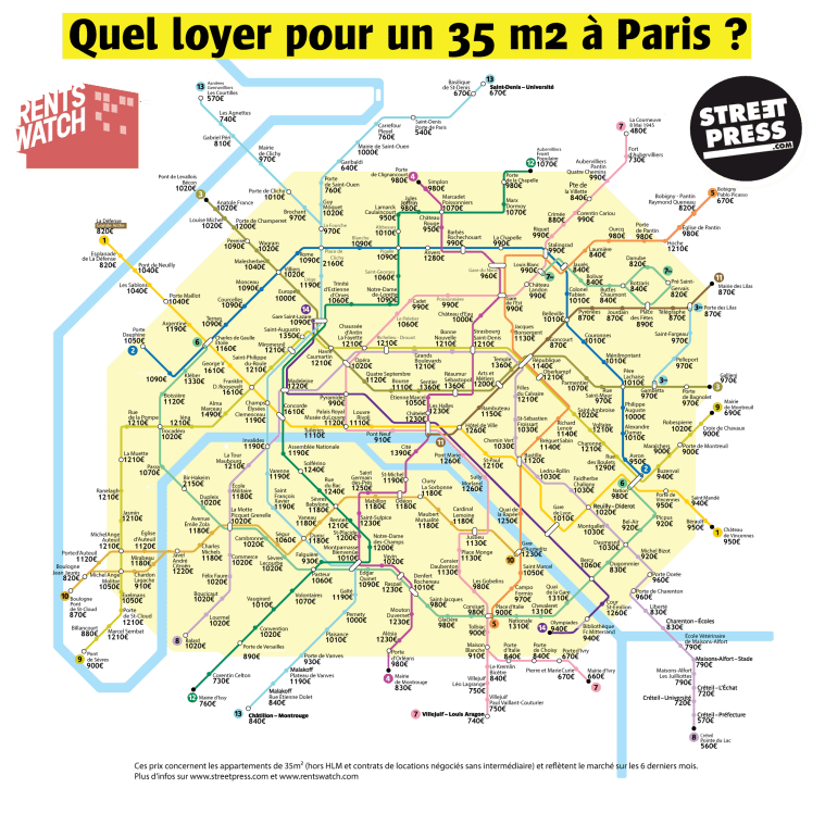 Ακόμη κι αυτά που ισοδυναμούν ή είναι μεγαλύτερα από 9 τετραγωνικά μέτρα, καταλαβαίνετε πως είναι σαν ένα δωμάτιο μέσου Ελληνικού σπιτιού, πραγματικά ένα κουτί, μέσα στο οποίο πρέπει να κάνετε τα πάντα. Η κουζίνα είναι πάντοτε μικροσκοπική, κάποια διαμερίσματα έχουν κοινή τουαλέτα στο διάδρομο, ενώ αν υπάρχει ασανσέρ, κάντε το σταυρό σας, ο Θεός είναι δίπλα σας. Φυσικά υπάρχουν και μεγαλύτερα διαμερίσματα, των 30-35 τετραγωνικών μέτρων για παράδειγμα (μην ξανοίγεστε πολύ, θα καταλάβετε γιατί) αλλά σε αυτά πιθανότατα θα πρέπει να βρείτε συγκάτοικο, γιατί τα ενοίκια τσούζουν! Παρακάτω ένας πίνακας με τα ενοίκια στο Παρίσι, ανάλογα με το σταθμό του μετρό. Καθίστε καλύτερα, μην έχουμε απώλειες. Έχω κι άλλα να πω.
