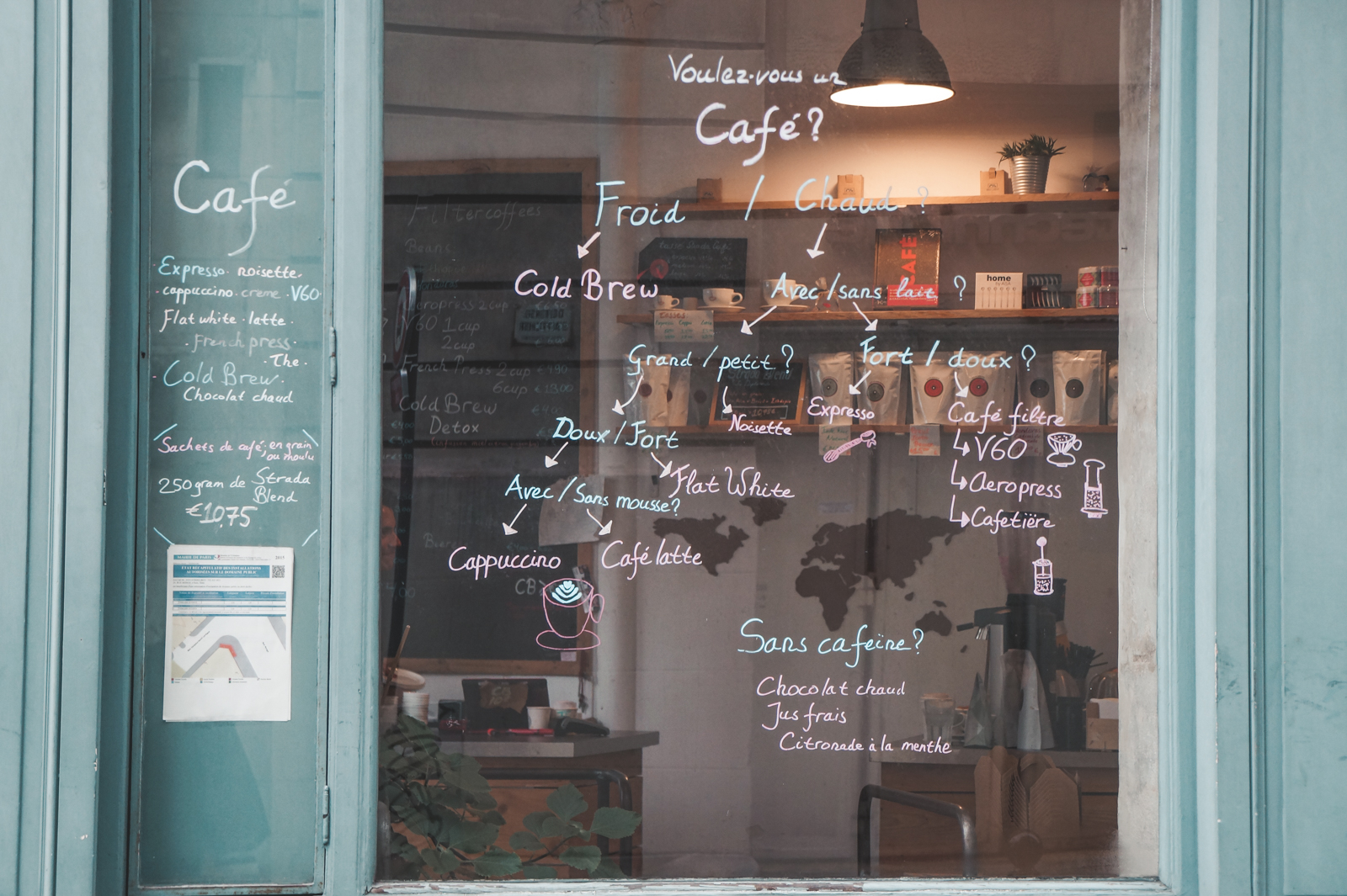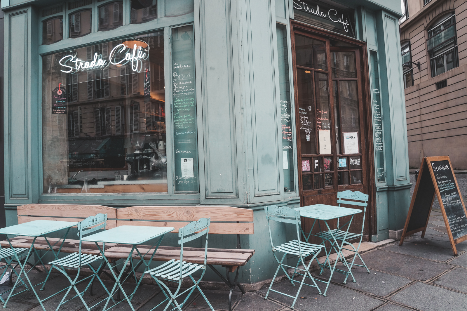 Είχα περάσει αρκετές φορές έξω από το Strada Café στη γειτονιά του Marais στις βόλτες μου για φωτογραφίες αλλά πάντα συνέχιζα το δρόμο μου, ίσως επειδή μου φαινόταν κάπως «σκοτεινό». Ώσπου στα τέλη του 2014, εμφανίστηκε στο προσκήνιο το αδερφάκι του, στη rue Monge, στην αριστερή όχθη του Σηκουάνα, φωτεινό και ευρύχωρο (σε σχέση πάντα με τα υπόλοιπα trendy café του Παρισιού), οπότε και μπήκε στην καρδιά μου.